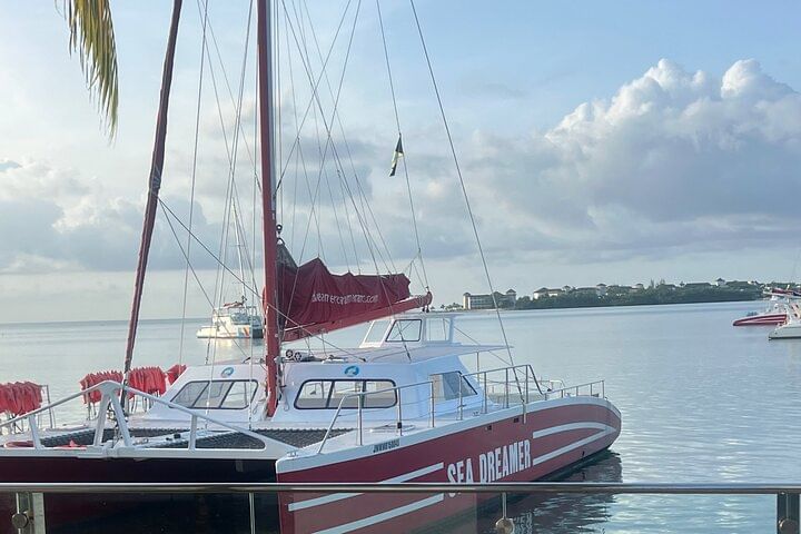 Experience an unforgettable day of fun in the sun on our party catamaran and snorkeling tour in Montego Bay! Swim and snorkel in the crystal-clear waters of the Caribbean Sea, discovering vibrant coral reefs and colorful marine life. But the excitement doesn't stop there - our catamaran is equipped with a top-of-the-line sound system, a fully stocked bar, and a lively crew ready to keep the party going. Dance to the beat of the music, sip on delicious cocktails, and soak up the stunning views of the Jamaican coastline. This is not your average snorkeling tour - it's a one-of-a-kind experience that you won't want to miss. Book now for the adventure of a lifetime!