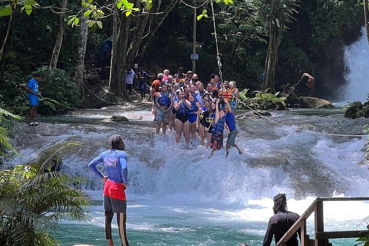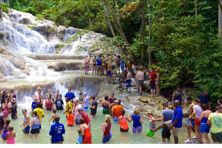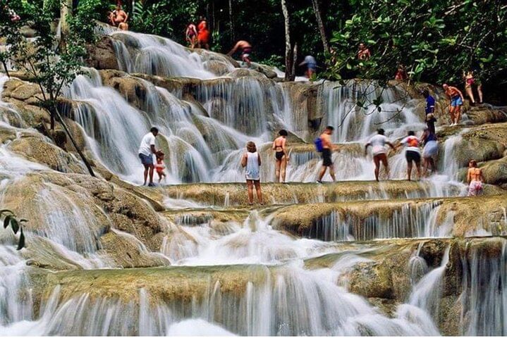 Flickystourja provides travelers with the perfect experience of a life time in Jamaica. Island Gully Falls is our first stop also known as the "Blue Hole" It's a beautiful swimming spot that features crystal-clear blue water surrounded by lush tropical vegetation. Travelers can jump from cliffs into the deep pool below or simply relax and enjoy the serene environment. Next stop the famous Dunn’s River Falls It's a stunning waterfall that cascades over terraced limestone rocks and flows into the Caribbean Sea. What makes it unique is that visitors have the opportunity to climb the falls.